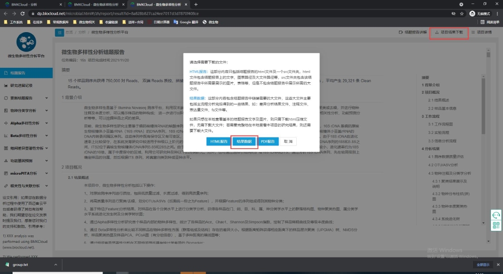 6 新報(bào)告結(jié)果下載:打開新的報(bào)告,點(diǎn)擊這份報(bào)告的右上角-項(xiàng)目結(jié)果下載-進(jìn)行下載結(jié)果數(shù)據(jù),就可以得到更新的這份報(bào)告的全部結(jié)果。