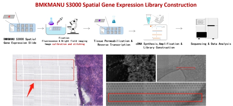可以利用BH1000對明場及熒光掃描過程中經(jīng)常出現(xiàn)的拼接錯誤進行校準(自主研發(fā)BMCHiper軟件,搭配自研半透半返模塊,實現(xiàn)圖像無錯校準),得到原片無錯高清的熒光圖像與原片無錯高清的明場圖像,為后續(xù)空間數(shù)據(jù)準確的定位和可視化提供基礎(chǔ),使得復(fù)雜的轉(zhuǎn)錄組數(shù)據(jù)能夠轉(zhuǎn)化為最直觀,最精準的生物學(xué)見解。